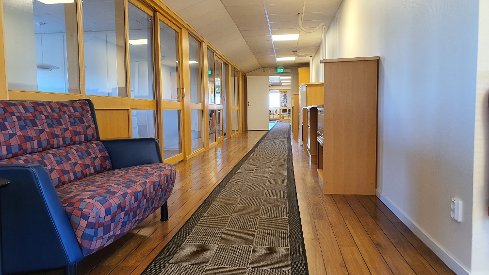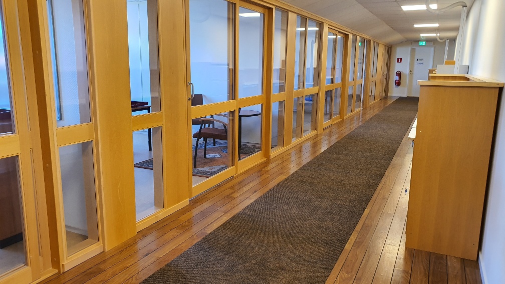 Alla rum ligger längs samma korridor med en gemensam utgång.