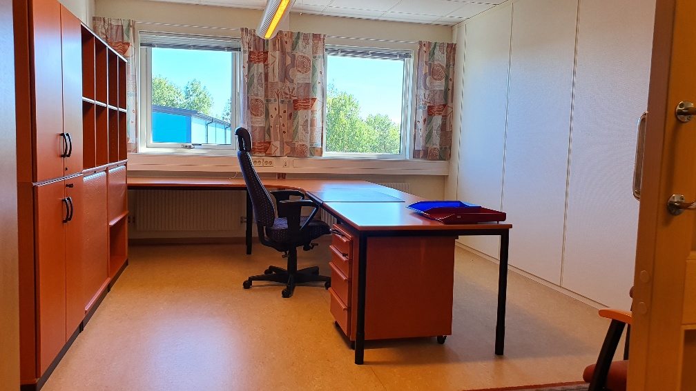 Ett av fyra normalstora kontorsrum.